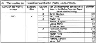 Ferner bitte ich, die Angaben der Reihenfolge der Bewerber im Wahlvorschlag und die Zahl der auf den Wahlvorschlag entfallenden Sitze sowie die Namen der Gewählten unter Angabe des Kennwortes des Trägers des jeweiligen Wahlvorschlags zu entnehmen.