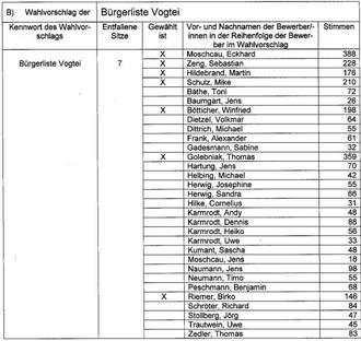 In der Gemeinde Vogtei wurde am 26.05.2024 folgendes Wahlergebnis festgestellt:
