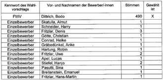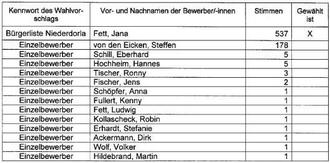 In der Gemeinde Vogtei OT Niederdorla wurde am 26.05.2024 folgendes Wahlergebnis festgestellt: