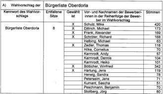 In der Gemeinde Vogtei OT Oberdorla wurde am 26.05.2024 folgendes Wahlergebnis festgestellt: