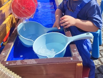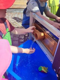 Unsere große Wasserbahn ist ein neues Highlight im Kindergarten-Garten. Zum Glück hatten wir in den letzten Wochen endlich ein paar Tage mit richtig warmem Sommerwetter, um sie täglich zu benutzen. Denn sie passt perfekt zu unserem aktuellen Sommerthema „Reggio inspiriert - lebendige Pädagogik im Dialog“.