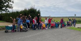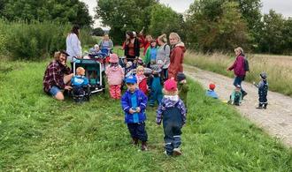 Das war unser aus der Vergangenheit bewährtes Motto für unseren Kindergartenwandertag am Dienstag, den 29.08.2023. Und so zogen wir allesamt (Groß und Klein, mit und ohne Wagen) los. Wir wollten einen spannenden Platz vor dem Hainichwald erreichen.