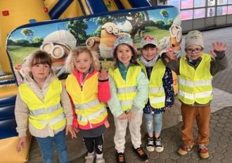 Als erstes durften wir uns auf einem Bus künstlerisch betätigen. Hierzu hatten wir viele bunte Stifte zu verfügung und jeder konnte das malen was er am besten konnte. Auch eure Namen duftet ihr auf den Bus schreiben. Als Überraschung stand für alle Kinder eine Hüpfburg bereit, hier durftet ihr euch nach dem malen nochmal kurz austoben.