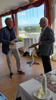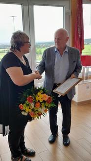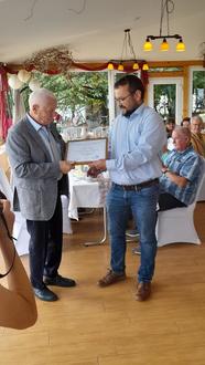 Am 26. August 2023 haben dann der Bürgermeister unserer Gemeinde, Christian Konkel, die Vorsitzende des Heimatvereins, Yvonne Kley und der Ehrenvorsitzende des Heimatvereins, Eberhard Hauschild, Dr. Gerd Kley anlässlich seiner Feier zum 80. Geburtstag die Ehrenurkunde überreicht.