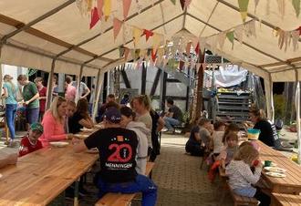 Nicht nur beim gemeinsamen Staubaufwirbeln konnten Eltern und Pädagogen in spannende Gespräche miteinander kommen, sondern auch beim gemeinsamen Essen. Jeder brachte dazu etwas Leckeres mit, so dass sich an einem sehr üppigen Buffet alle Helferinnen und Helfer ausreichend stärken konnten.