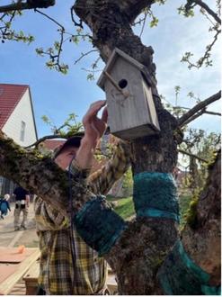 Als der Winter zu Ende ging, lasen wir in der Gruppe der „Mittleren“ das Buch vom „Star im Apfelbaum“ von Edith Berger und Ingeborg Meyer Rey. Wir hörten in der Geschichte wie der Star den kommenden Frühling ankündigte. Genau wie der Großvater in dem Buch, hängten auch wir einen Starenkasten in den Apfelbaum in unserem KindergartenGarten auf. Vielleicht zieht ja auch bei uns ein Vogel ein und verkündet den nahenden Frühling.