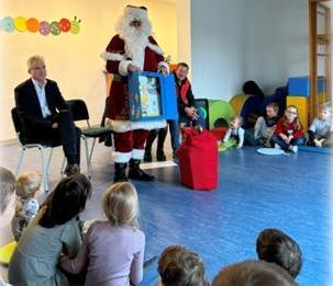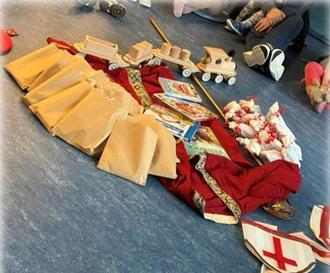 Für jedes Kind gab es eine fröhliche Nikolaus-Mütze sowie eine gefüllte Überraschungstüte mit Süßigkeiten, einer funkelnden Sternenrassel für die Sternchen- und Sonnenkinder und ein Ballspiel für die Regentropfen- und Regenbogenkinder.