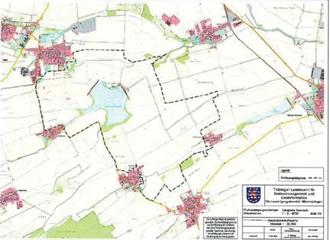 Das vorgesehene Verfahrensgebiet umfasst Teile der Gemarkungen Flarchheim, Flur 1,2,7,8, Gemarkung Heroldishausen Flur 1,2,3, Mülverstedt, Flur 3, Niederdorla, Flur 3,4,5,8, Oberdorla, Flur 8, Oppershausen Flur 1,8 und Seebach Flur 2,10,11.