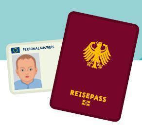 Bitte beachten Sie, dass bei Reisen innerhalb der EU jedes Familienmitglied ein gültiges Ausweisdokument benötigt; bei Reisen außerhalb der EU einen gültigen Reisepass. Genauere Informationen zu ihrem Reiseland erhalten Sie beim Auswärtigen Amt.