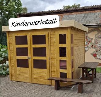 Mit einer großartigen Spende und dem Aufbau eines Holzhauses, unserer neuen -KINDERWERKSTATT-, durch unseren Förderverein, konnte ein langgehegter Wunsch in Erfüllung gehen.