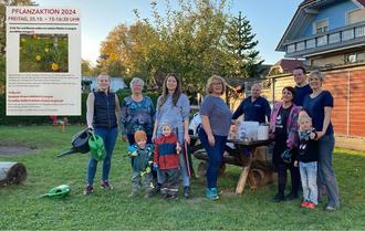 Weitere Zwiebeln von Krokussen und Winterlingen fanden ihren Platz auf dem kleinen Spielplatz Hinterm Mühldorf. Die Beete vor dem Kindergarten wurden mit weiteren Aliumzwiebeln ergänzt.