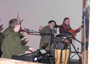 Nachdem der Weihnachtsmann alle Wünsche entgegengenommen hatte, erklang eine Stimme von gewaltiger Kraft. Der aus Irland stammende und in Niederdorla heimisch gewordene Nigel Connell krönte den Weihnachtsmarkt mit einem einstündigen Konzert. Zusammen mit Mario Meinel an der Gitarre und Adrian Seybusch am Keyboard heizte er mit rockigen, aber auch besinnlichen Tönen ein. Spätestens jetzt war jeder auf die Weihnachtszeit eingestimmt. Freudig und dicht gedrängt lauschten, sangen, tanzten und feierten die Besucherinnen und Besucher ausgelassen vor der Bühne. Nigel bekannte zwischendurch in seiner gewöhnt sympathischen Art „Ich bin ein Vogteier!“ - was will man mehr?! Neben englischsprachigen Weihnachtsliedern und Klassikern aus Rock und Pop sang der Anger zusammen das über 200 Jahre alte Lied „Stille Nacht, heilige Nacht“ - ein sehr berührender Moment. Vielen Dank an Nigel, Mario und Adrian für diese einmalige Stimmung!
