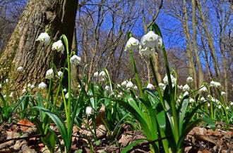 Nicht ohne Grund werden die eleganten Märzenbecher auch Märzglöckchen genannt. Sie läuten alljährlich den Frühling ein und eröffnen damit den Reigen der Frühblüher. Je nach Witterung wird die Blüte etwa bis Mitte März andauern. Die Bestände sind zum Teil so üppig, dass weiße Blütenteppiche entstehen. Um sie zu sehen, muss nicht querfeldein gewandert werden. Sie wachsen vielmehr direkt neben dem Wanderweg.