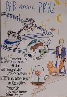 Am 26., 27. und 28. März 2025, jeweils um 19 Uhr, präsentieren die Schülerinnen und Schüler ihre Inszenierung des Klassikers „Der kleine Prinz“ von Antoine de Saint-Exupéry im Bürgerhaus Großengottern.