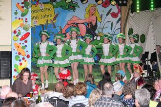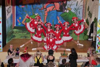 Zwischen Grüner Garde und Damenballett stehen die Rote Garde und die Showgirls auf der Bühne. Die Showgirls sind zwei Tänzerinnen mehr als die Garde, sonst die selben jungen Frauen. Die jungen Frauen fragen wir nach dem Unterschied zwischen Roter Garde und Showgirls? “Das kann man nicht vergleichen.” Helau.
