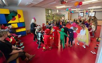 Die Erzieher/innen sorgten mit lustigen Spielen und Mitmachliedern dafür, dass niemand lange stillstehen musste. Die Kinder genossen es sichtlich, gruppenübergreifend zusammenzukommen und ihre Kostüme zu präsentieren.