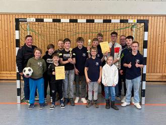 Bei den „Großen“ war im 1. Spiel das Tor wie vernagelt, so dass es „nur“ zu einem 0:0 reichte. Das 2. Spiel konnte gewonnen werden, so dass es nun auf das alles entscheidende 3. Spiel ankam.Wieder war unsere Mannschaft fast nur in der gegnerischen Hälfte zu finden, aber ein Tor wollte trotz zahlreicher Chancen einfach nicht fallen. Buchstäblich in der letzten Sekunde bekamen wir nach einem Handspiel vorm Tor einen Elfmeter, diesen verwandelten wir zum Endstand zum 1:0.Dieses Ergebnis reichte schlussendlich zum Sieg in dieser Altersklasse.