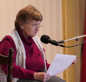 Nun folgte ein Vortrag von Doris Zeng. Sie sprach über die Herkunft des Vogteier Platts. Dabei ging die Deutschlehrerin ein auf das Verhältnis unserer Mundart zu den Mundarten der Umgebung. Das Publikum erfuhr, zwischen Oberdorla und Mühlhausen verläuft eine Sprachgrenze zwischen Mittel- und Nordthüringischen. Das Publikum lernte: Zur Zeit, als Mittelhochdeutsch gesprochen wurde, von 1050 bis 1350, begannen die Vogteier ihre eigene Mundart zu pflegen. Die deutsche Sprache wandelte sich zum Neuhochdeutschen, die Vogteier sprachen das Mittelhochdeutsche weiter und entwickelten es zum Vogteier Platt. Doris Zeng zeigte an Beispielen die Entwicklung zum Neuhochdeutschen und wies nach: Vogteier verstehen Texte aus dem Mittelhochdeutsch des Mittelalters. So wurden die Wurzeln unserer Mundart deutlich.