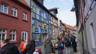 Mit Freuden sahen wir, wie die beiden Busse vor unserem Kindergarten hielten. Pünktlich 9.30 Uhr starteten wir in das Abenteuer. Schnell fand jeder einen geeigneten Sitzplatz in einem der Busse. Als alle ordnungsgemäß angeschnallt waren, setzten sich die beiden Busse in Richtung Bad Langensalza in Bewegung. Die Fahrt war ein bisschen weit, aber beileibe nicht langweilig. Was wir aus dem Bus heraus alles sehen konnten: Viele Autos, LKWs und Traktoren, Menschen und Tiere wie zum Beispiel Pferde, Hühner und Hunde aber auch Rehe. Ruck zuck waren wir in Bad Langensalza angekommen. Nun mussten wir nur noch eine kleine Strecke laufen und schwups waren wir in der Rumpelburg angekommen.