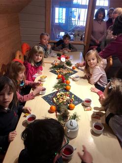 Eine Pferdekutsche holte die Klasse 1/2 von der Schule ab und brachte uns zum Lillehammer-Huset. Die Mitglieder des Lillehammer-Fördervereines begrüßten uns mit einem Lagerfeuer. Frau Grebhahn sang mit den Schülern Weihnachtslieder aus Norwegen und Deutschland. Dann ging es an die festlich geschmückte Kaffeetafel. Plätzchen und Tee schmeckte allen. Geschichten und die norwegische Sprache brachte uns Björns Mama nahe. Der heißersehnte Milchreis, mit einer Mandel darin, wurde spannend erwartet. Es war richtig leise, als er verspeist wurde. Carlotta aus der 2. Klasse und Elias aus der 1. Klasse hatten die Mandel im Milchreis. Als Geschenk erhielten sie ein norwegisches Püppchen und durften mit König und Königin angesprochen werden. Das war ein Spaß! Vielen Dank an das gesamte Team des Lillehammer-Vereines.