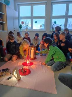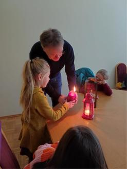 Wir hatten es auch, das Friedenslicht von Bethlehem!!!! Efis Mama überreichte es der Grundschule und Efi dann der Klasse 1/2, dem Bürgermeister Herrn Schulz und dem Kindergarten. Es war so feierlich, als Efi mit dem Lied „Ein Licht geht uns auf!“ das Friedenslicht übergab.