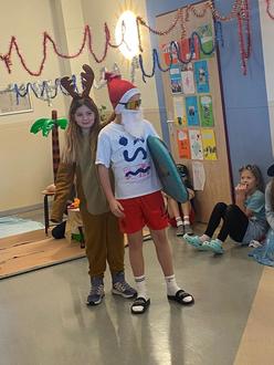 Am 12. Dezember war es dann endlich so weit, die SWG und Grundschule haben gemeinschaftlich eingeladen. Während die SWG für das leibliche Wohl zuständig war, hatten die Grundschüler unter Leitung der Erzieherinnen Frau Ebert und Frau Wuttke ein Theaterstück und Lieder einstudiert. Motto in diesem Jahr war: „Unglaubliche Weihnachten - mit Rentier Helge“. Es wurde gesungen, getanzt und gestaunt über das kleine Theaterstück.