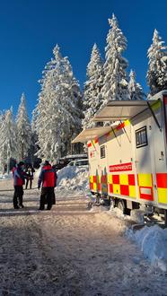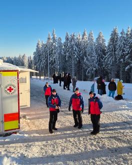 Gemeinsam mit Kräften der Bundeswehr und den DRK-Bereitschaften übernahmen Bergwacht-Einsatzkräfte aus Thüringen, Hessen und Württemberg die sanitätsdienstliche Absicherung der Veranstaltung. Verlässlich - auch bei eisiger Kälte und starkem Wind.
