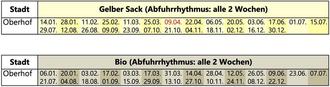 Feiertage sind bereits berücksichtigt, Ausweichtermine sind rot gekennzeichnet!