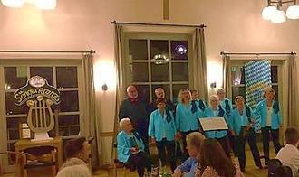 Beteiligt waren diesmal vier Chöre. Außer dem gastgebenden Sängerkranz und uns waren der Gesangsverein 1919 Eußenhausen und der Gesangsverein Frohsinn 1893 Burglauer mit jeweils vier Liedern vertreten. Wir hatten - passend zum Thema des Abends - Lieder mit Bezug zu Herbst und Wein ausgewählt.