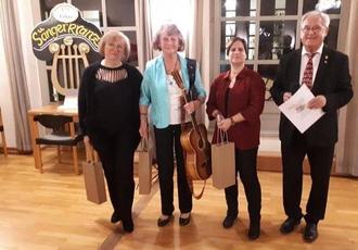 Der Vorstandsvorsitzende des Sängerkranzes, Herr Werner Erb, dankte im Anschluss den Dirigentinnen (die Chorleiterin von Burglauer war leider nicht mehr anwesend) stellvertretend für ihre Chöre für die Mitwirkung beim Weinfest.