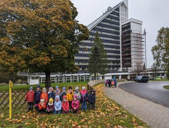 Gruppe Waldhasen und Wirbelwind auf dem Weg ins Kino