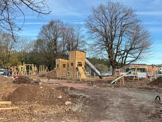 Bereits jetzt sind deutliche Fortschritte sichtbar: Die neuen Spielgeräte sind aufgebaut und geben einen ersten Eindruck davon, wie attraktiv der erneuerte Spielplatz künftig sein wird. Für unsere kleinen Bürgerinnen und Bürger sowie für die Gäste der Stadt entsteht hier ein moderner und ansprechender Bereich, der den gesamten Kurpark erheblich aufwertet.