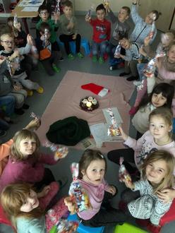 Am Nikolaustag klopfte auf einmal der Nikolaus an die Klassenzimmertür. Alle waren gespannt, wer da wohl klopft. Ein großer Sack stand vor der Tür. Der Nikolaus brachte für alle Kinder Süßigkeiten. Karl und Rudi lasen sogar eine Geschichte vom Nikolaus vor.