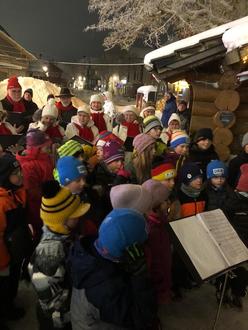 Am Nachmittag konnten wir natürlich den echten Nikolaus vor dem Oberen Hof bestaunen. Zuvor sangen wir mit dem Jubiläumschor das Lied „In der Weihnachtsbäckerei“.