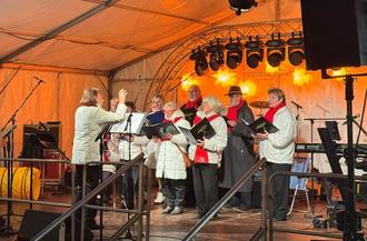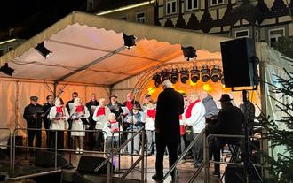 Am 29.11.2024 war es wieder soweit: Der Jubiläumschor aus Oberhof und der Sängerkranz 1850 Bad Neustadt eröffneten die „Lange Einkaufsnacht“ in der Partnerstadt Bad Neustadt. Mit ihrem vielfältigen Repertoire an Advents- und Weihnachtsliedern begeisterten die Sängerinnen und Sänger das Publikum auf dem festlich geschmückten Marktplatz und schufen eine besinnliche, vorweihnachtliche Atmosphäre.