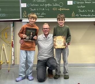 Ein weiterer schöner Moment folgte einige Tage später: Der Bürgermeister überreichte den Klassen 1/2 und 3/4 jeweils ein Buch für ihre Klassenbibliothek. Die Kinder nahmen die Geschenke mit großer Freude entgegen und blätterten neugierig in den neuen Büchern.