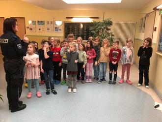 Am 05.02.2024 besuchte Frau Silvana Malter von der Polizeiinspektion Suhl unsere 1. Klasse. Sie erzählte den Kindern Wichtiges über das Verhalten des Fußgängers im Straßenverkehr. Das Spiel „3, 2, 1“ zum Abschluss ihres Besuches gefiel allen Schülern sehr gut und machte Riesenspaß! Der Höhepunkt war aber die Prüfung: „Wie überquere ich als Fußgänger die Straße richtig!“ Als Auszeichnung bekam jeder Schüler eine Urkunde. Da waren alle Erstklässler richtig stolz!