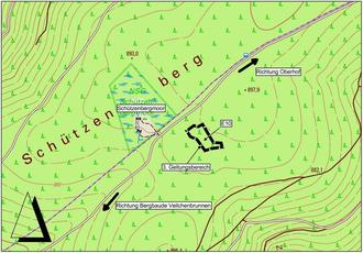 Die Lage des 3. Geltungsbereiches des Bebauungsplans Sondergebiet „Rennschlitten- und Bobbahn/Fallbachhang“ ist dem 3. Übersichtslageplan zu entnehmen. Der 3. Geltungsbereich befindet sich gegenüber dem „Schützenbergmoor“, südlich des vorhandenen Weges zwischen der Stadt Oberhof und der Bergbaude „Veilchenbrunnen“ (Gemarkung Oberhof). Im 3. Geltungsbereich ist die Ersatzmaßnahme E10 geplant. Die Maßnahme beinhaltet die Anpflanzung von standortgerechten Laubgehölzen im Randbereich eines Nassstandortes.