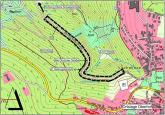 Die Lage des 2. Geltungsbereiches des Bebauungsplans Sondergebiet „Rennschlitten- und Bobbahn/Fallbachhang“ ist dem 2. Übersichtslageplan zu entnehmen. Der 2. Geltungsbereich befindet sich in der „Alten Ohrdrufer Straße“ zwischen der Ortslage von Oberhof und der „Oberen Schweizerhütte“ (Gemarkung Oberhof). Im 2. Geltungsbereich ist die Schutzmaßnahme S2 geplant. Die Maßnahme beinhaltet die Errichtung eines Hochbords sowie einer Leitplanke entlang der „Alten Ohrdrufer Straße“.