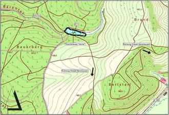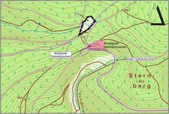 Die Lage der Ersatzmaßnahme E4 des Bebauungsplans Sondergebiet „Rennschlitten- und Bobbahn/Fallbachhang“ ist dem 11. Übersichtslageplan zu entnehmen. Die Ersatzmaßnahme E4 befindet sich in direkter Nähe der Bergbaude „Veilchenbrunnen“ zwischen dem „Schützenberg“, dem „Gebrannter Stein“ und dem „Steinberg“. Die Maßnahme befindet sich im zur Kernstadt Steinbach-Hallenberg zugehörigen Bereich (Gemarkung Steinbach-Hallenberg). Die Ersatzmaßnahme E4 hat die Entfichtung der Moorwiese am Veilchenbrunnen zum Ziel.
