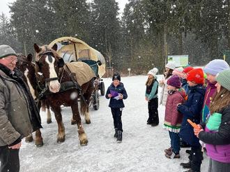 Doch das Highlight waren die Schüler’innen, die ihr echtes Lieblingstier mit in die Schule brachten. So durfte die Klasse unter anderem einen Hund und Pferde bestaunen.