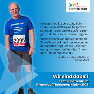 „Was gibt es Besseres, als beim Laufen oder Walken ins Gespräch zu kommen – über die Herausforderungen und Chancen in unserer Region? Vielleicht sind wir dadurch nicht die Schnellsten auf der Strecke, aber jeder Schritt bringt uns ins Gespräch – und gute Ideen und Impulse für unsere Region mit ins Ziel“, sagt Nils Blondin, Geschäftsführer der Feinmess Suhl GmbH. / Quelle: Feinmess Suhl