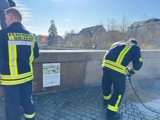 Gemeinsam wurde angepackt: Müll gesammelt, Aufkleber an Laternen und Mülleimern entfernt und sogar die Mauer am Stadtplatz auf Hochglanz gebracht.