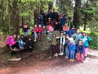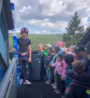 Am 13.06.2024 wanderten alle Klassen der Grundschule über den Stein 16 zum Moor. Danach zum Veilchenbrunnen und dort wurde zünftig gefrühstückt. Nun ging es zur Schanze. Dort trainierten sogar die Skispringer und alle riefen plötzlich: „Nando, Nando ZIEH!“ Nando Riemann zeigte uns einen exzellenten Sprung. Alle waren begeistert.