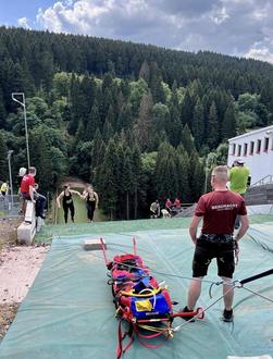 Zusammen mit der DRK Bergwacht Zella-Mehlis und DRK Bergwacht Tambach-Dietharz fand am 05.06. eine erstmalig durchgeführte Ausbildung mit den Feuerwehren Oberhof, Zella-Mehlis und Schwarza statt.