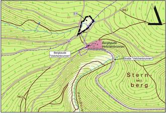 Die Lage der Ersatzmaßnahme E4 des Bebauungsplans Sondergebiet „Rennschlitten- und Bobbahn/Fallbachhang“ ist dem 11. Übersichtslageplan zu entnehmen. Die Ersatzmaßnahme E4 befindet sich in direkter Nähe der Bergbaude „Veilchenbrunnen“ zwischen dem „Schützenberg“, dem „Gebrannter Stein“ und dem „Steinberg“. Die Maßnahme befindet sich im zur Kernstadt Steinbach-Hallenberg zugehörigen Bereich (Gemarkung Steinbach-Hallenberg). Die Ersatzmaßnahme E4 hat die Entfichtung der Moorwiese am Veilchenbrunnen zum Ziel.