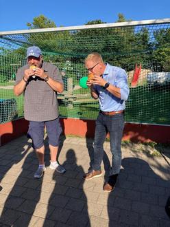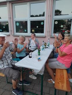 Zurück zur Jägerstraße empfingen wir weitere Gäste. Es wurde geschunkelt, gelacht, getanzt und nette Gespräche geführt. Auch ein Magier sorgte für Staunen mit seiner Mental-Show „Kopfkino“. Die Getränkeversorgung übernahm der Bob Racing Club, der „Fleischer aus dem Wald“ zauberte ein leckeres und umfangreiches BBQ - Buffet. Unser neuer Bürgermeister kam auch um zu gratulieren und einen leckeren Burger zu genießen. Es war ein zauberhafter Nachmittag und Abend... wir danken allen, die dazu beigetragen haben.