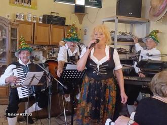 Sozusagen zwischen „Thüringer Klößen und Gänsebraten“, Feuerzangenbowle und dem nachmittäglichen Kaffeetrinken boten die drei Musikanten Wolfgang, Dietrich und Armin, zusammen mit der singenden Wirtin Eva Schmidt ein kurzweiliges, abwechslungsreiches Programm, das aus Sketchen, Texten und Liedern bestand, die geeignet waren, sowohl Weihnachtsstimmung zu verbreiten, als auch die Lachmuskeln der anwesenden Gäste zu strapazieren, was in dieser, angesichts der Weltlage bedrückenden Zeit, ja nicht ganz unwichtig ist. Sogar der Nikolaus hatte daran seine Freude...