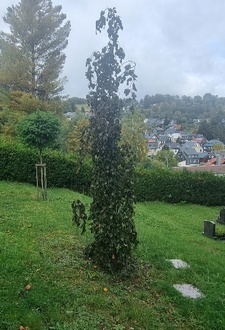 Leider ist dies auf Grund der Trinkwasserzonen in Deesbach nicht möglich. Die Beweggründe für Friedbäume sind unterschiedlich: Der eine sucht die Nähe zur Natur, der andere findet den Baum als eine tröstliche Alternative zu einem konventionellen Grab. Die Verbundenheit eines Verstorbenen mit einem wachsenden Baum spendet Angehörigen eine besondere Form des Trosts. Eine äußerst naturverbundene Bestattungsform ist die Beisetzung an befriedeten Bäumen. Für die Angehörigen ist dies ein idealer Ort der inneren Einkehr sowie des Erinnerns an den Verstorbenen. Unter den angepflanzten Bäumen (Hängerotbuche und Kugellinde) ruht die Asche eurer Verstorbener in biologisch abbaubaren Urnen. Die Beisetzung erfolgt in Erdröhren. Die dazugehörige Namensstehle aus Granit kann individuell durch Bilder und Texte graviert werden und macht auf die Grabstätte aufmerksam. Die Erdröhren sind für 2 Urnen ausgelegt und können als Partnergrab benutzt werden. Die Kosten für die Erdröhre mit Granitplatte beträgt 811,50 € zzgl. der individuellen Gravur beim Steinmetz oder Graveur eurer Wahl.