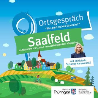 Beim Ortsgespräch am 20. November 2023 in Saalfeld werden Verkehrsministerin Karawanskij und die für den SPNV verantwortlichen Mitarbeiter des TLBV Auskunft zum gegenwärtigen Stand des zukünftigen Nahverkehrsangebot auf der Saalbahn geben. Das Ortsgespräch ist ein Angebot an die Bürgerinnen und Bürgern, sich über Rahmenbedingungen, Herausforderungen sowie den aktuellen Stand zu informieren und mit Politik und Verwaltung ins Gespräch zu kommen. Zu dieser Veranstaltung laden wir Sie herzlich ein und freuen uns auf einen konstruktiven Dialog mit Ihnen.